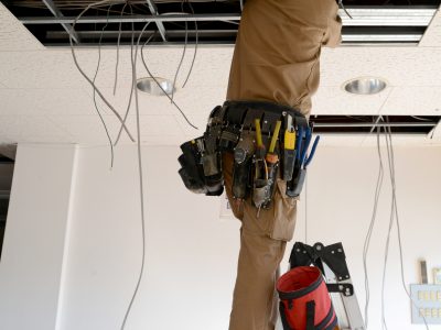 当社では新しく建てる建物の配線工事のはもちろんの事、建て替えなども含め、内装工事に関する配線工事も全て行っております。